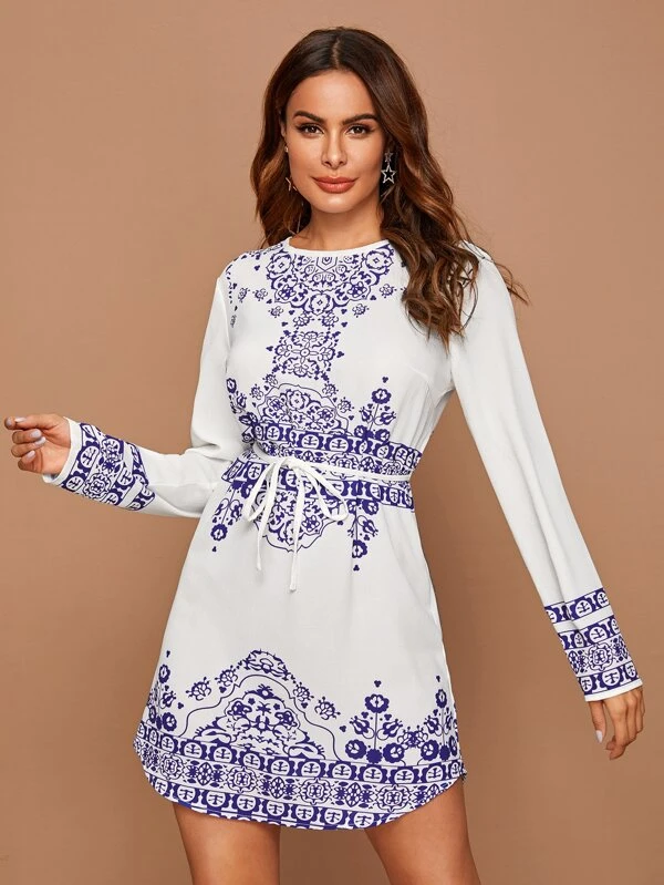 Rotita sleeveless tribal print maxi mermaid dress.